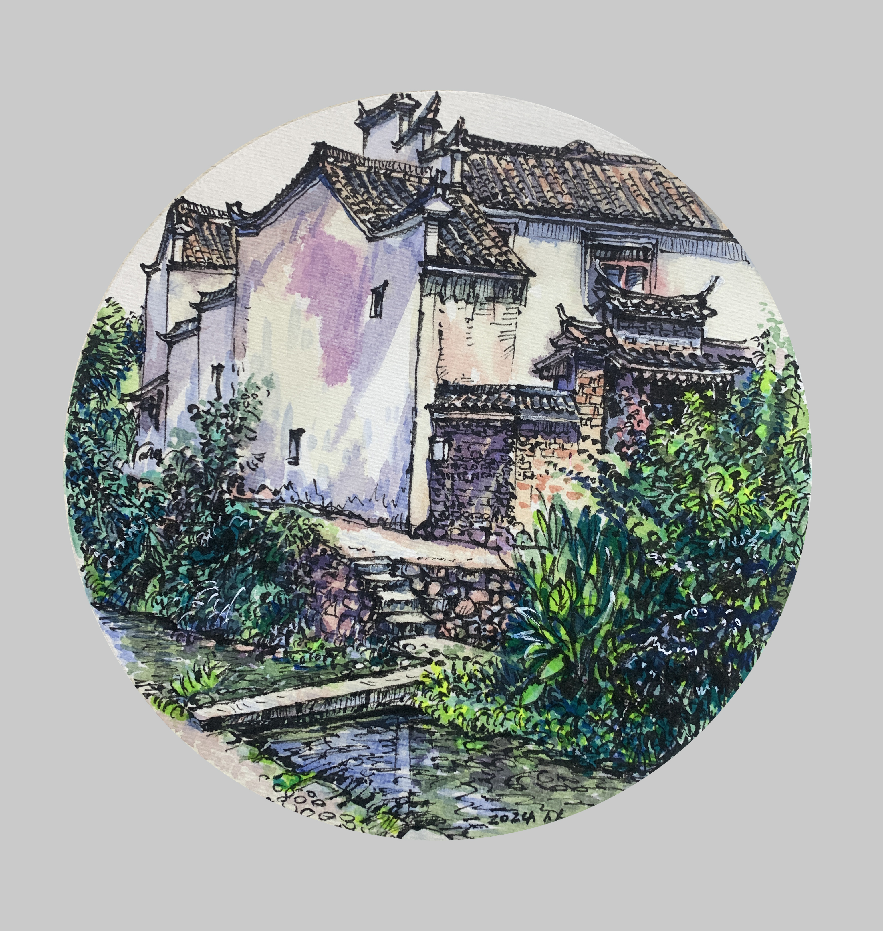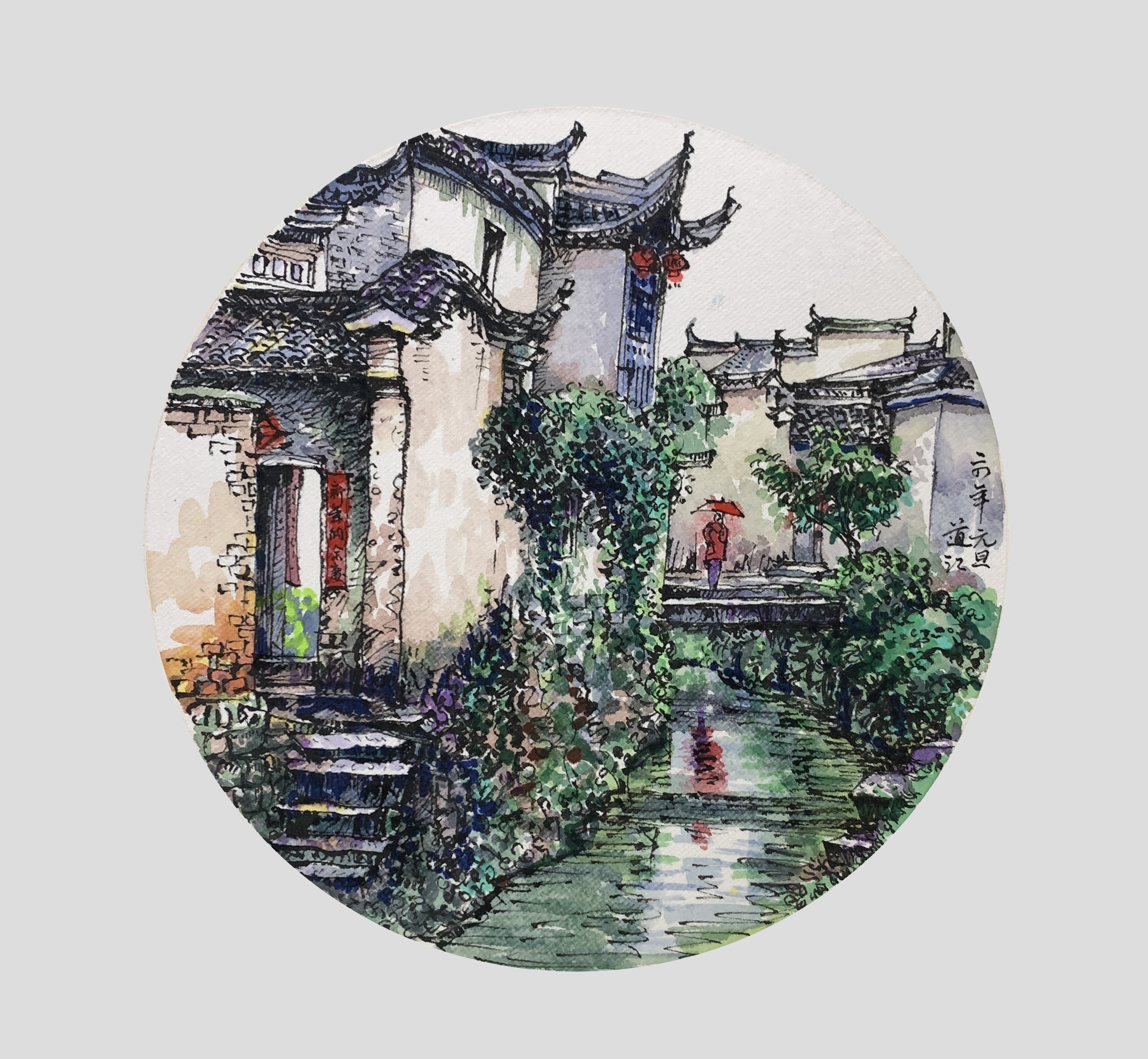 作者以钢笔速写淡彩的形式,捕捉记录了以建筑为主体的生活风景,画面中的线条和色彩自然生动,很好的表达了作者的所观所感。