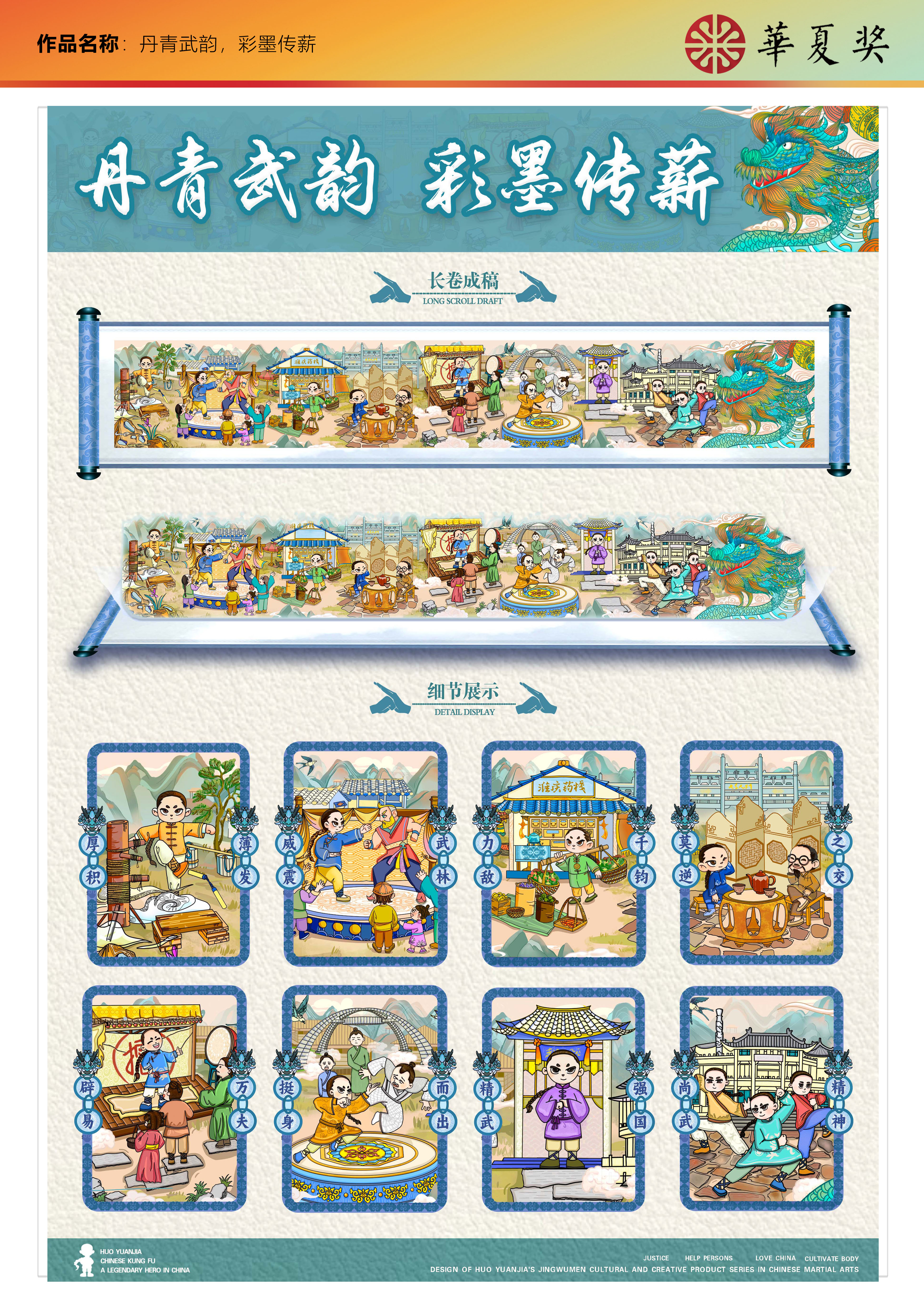 霍元甲是我国著名爱国武术家,提出“以武保国强种”其是精武精神的现实代表,本次设计以霍元甲IP为载体,将霍元甲一生的标志性事件表现出来,有利于精武精神的传播,带领我们感悟一代武术宗师的爱国精神。